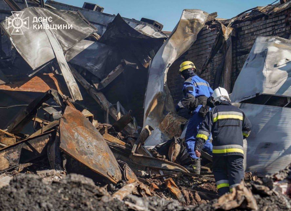 Рятувальники продовжують ліквідацію пошкоджень, спричинених ворожими ударами з повітря. Про це повідомляє ДСНС Київщини.