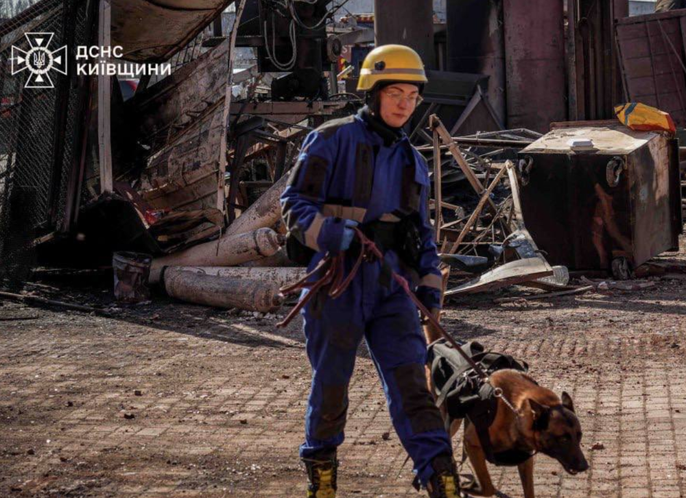 - Кінологічний розрахунок. Фахівці з навченими собаками ще раз перевіряють територію, щоб остаточно впевнитися у відсутності людей під завалами.