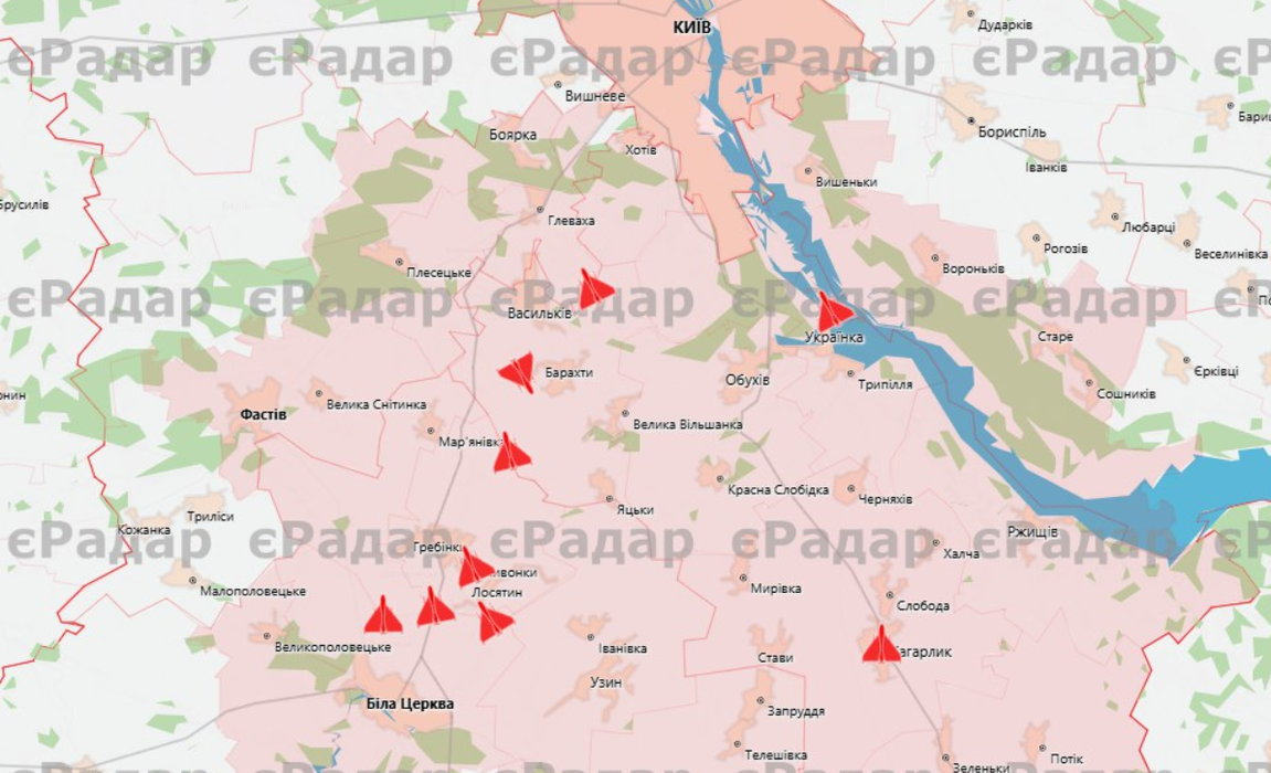 - Перші небезпечні об’єкти вже перебувають біля Боярки. Зафіксовано пуски крилатих ракет Х-101 з понад 6 літаків Ту-95МС.
