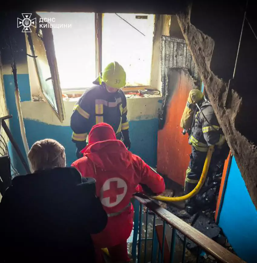 Поки одні рятувальники боролись із вогнем, інші – здійснювали евакуацію місцевих жителів. Деякі з них перебували в квартирах на 9 поверсі, де палав вогонь. Також люди чекали на допомогу на сходах.
