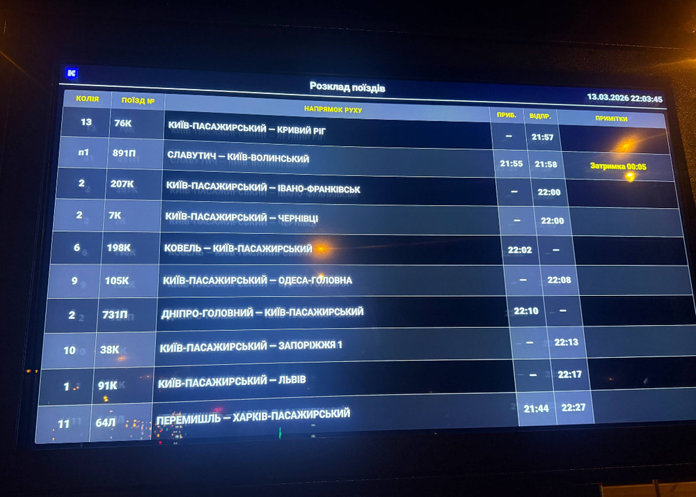 - На ньому відображається час та колія прибуття/відправлення потягів так само, як і всередині вокзалу.