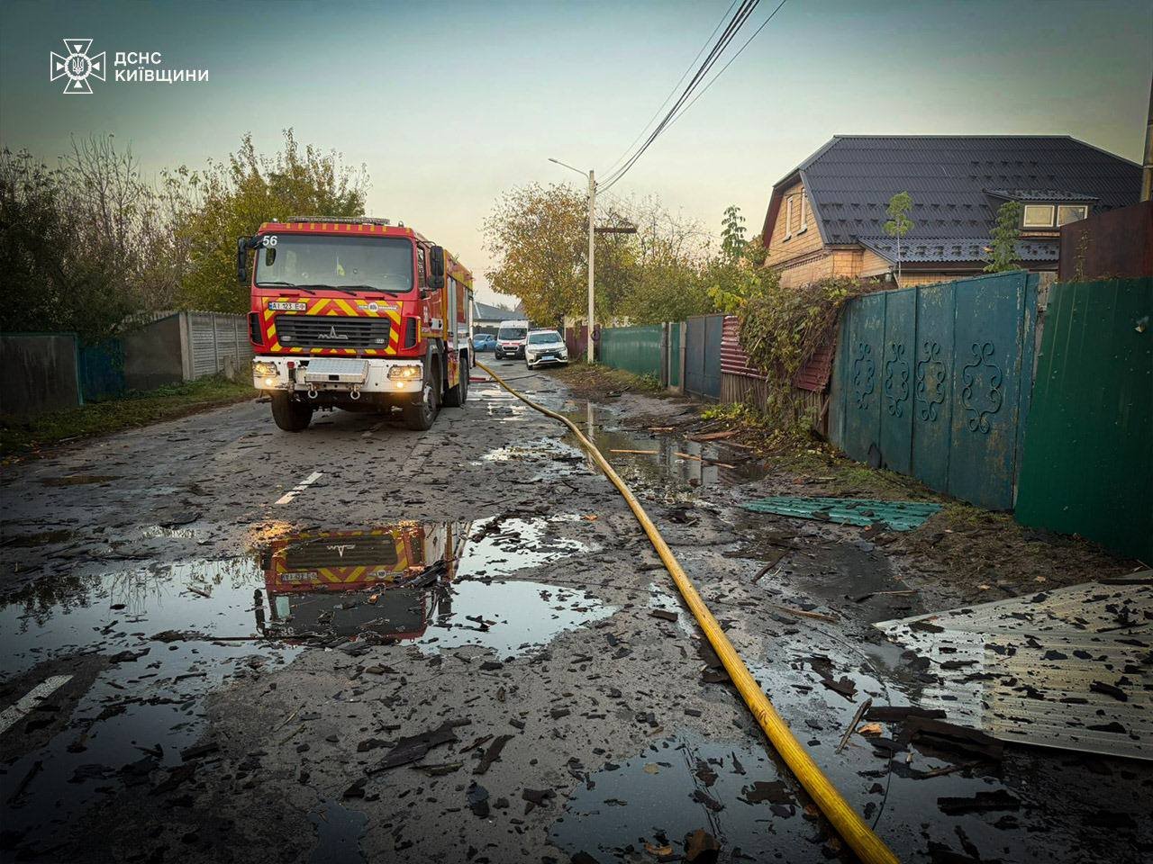 • Село Погреби, Броварський район: пошкоджено вантажний автомобіль, причеп та фасад автозаправної станції.