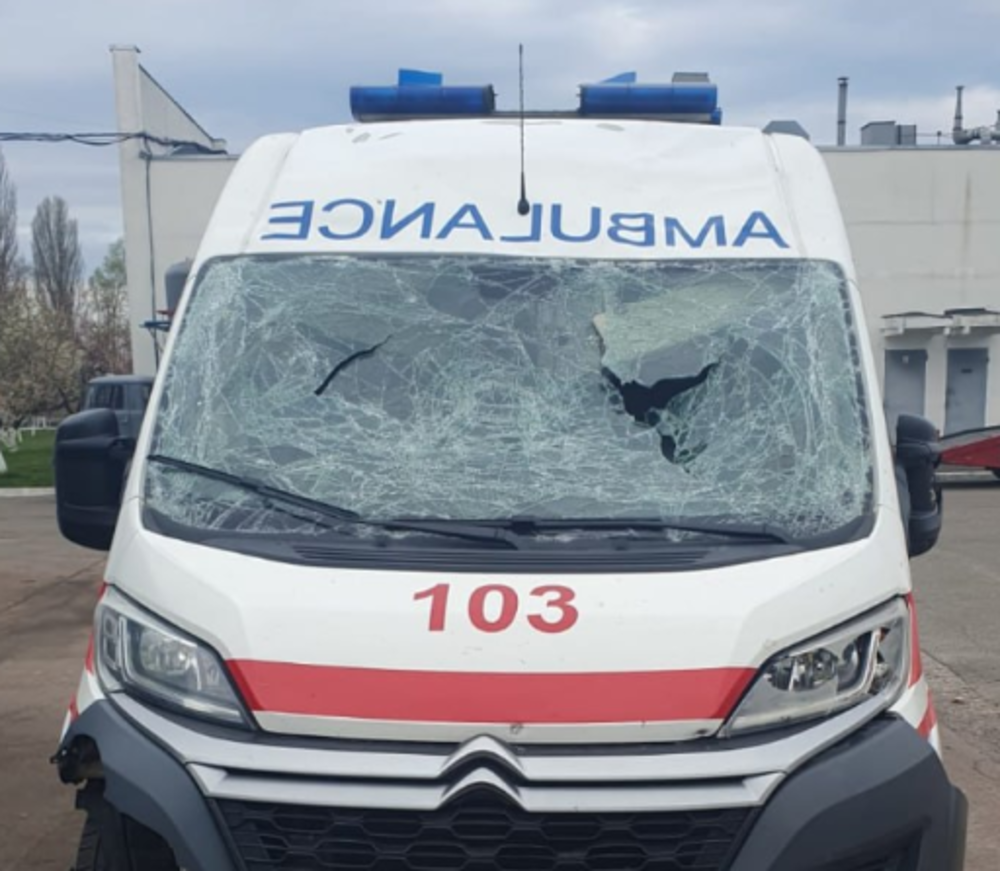 Небезпечні об’єкти пошкодили авто швидкої допомоги. За словами фахівців міської адміністрації, сильний удар із повітря пошкодив скло і двері. Також пошкоджене медичне обладнання: