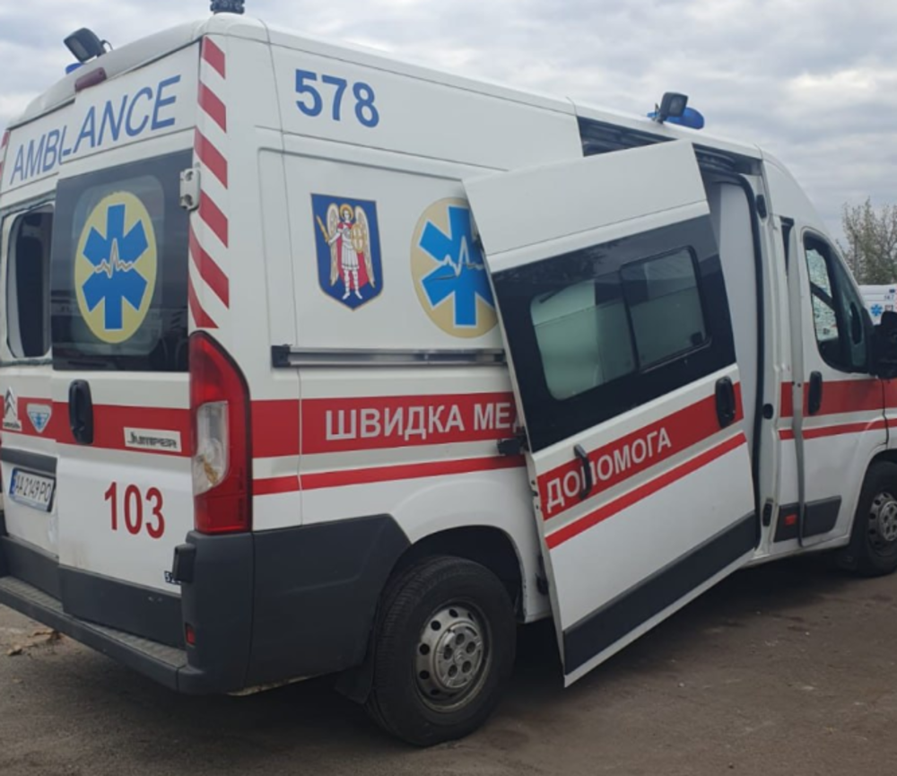 "Медичний персонал і водій зазнали поранень середньої важкості та були госпіталізовані до медичних закладів столиці", – повідомляє КМДА