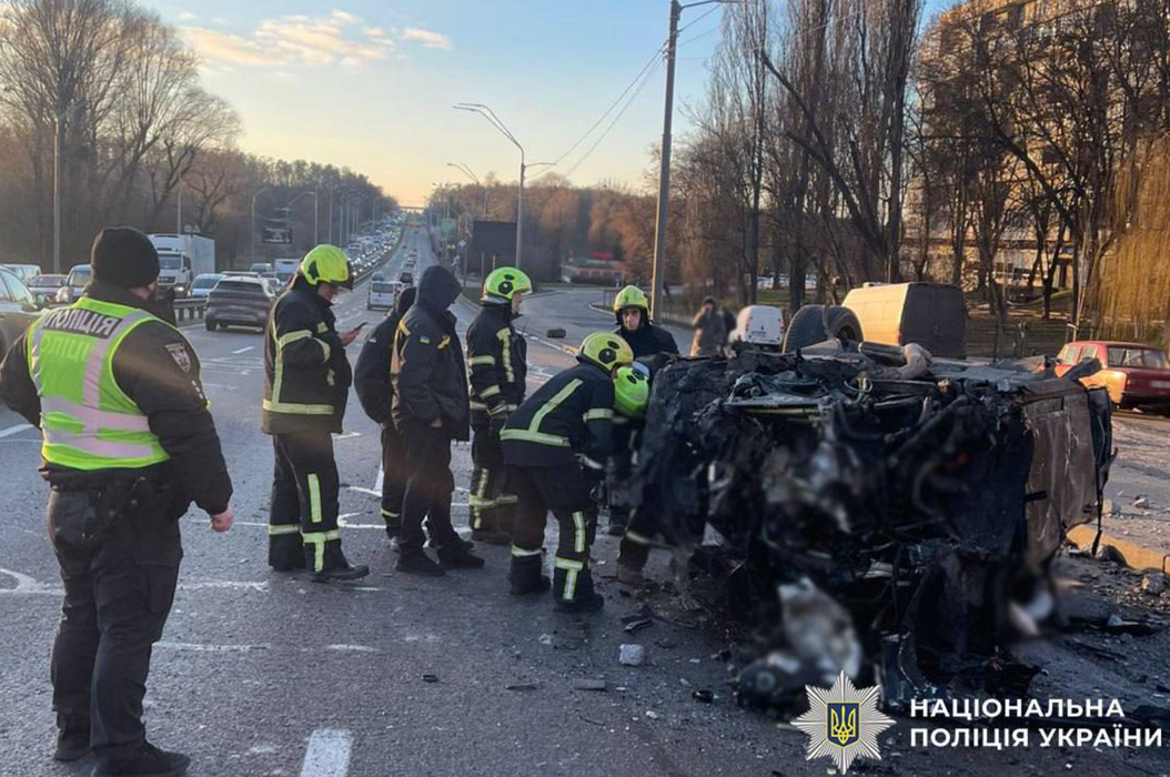 - На місці події досі працює слідчо-оперативна група столичного главку з розслідування ДТП та патрульні поліцейські.