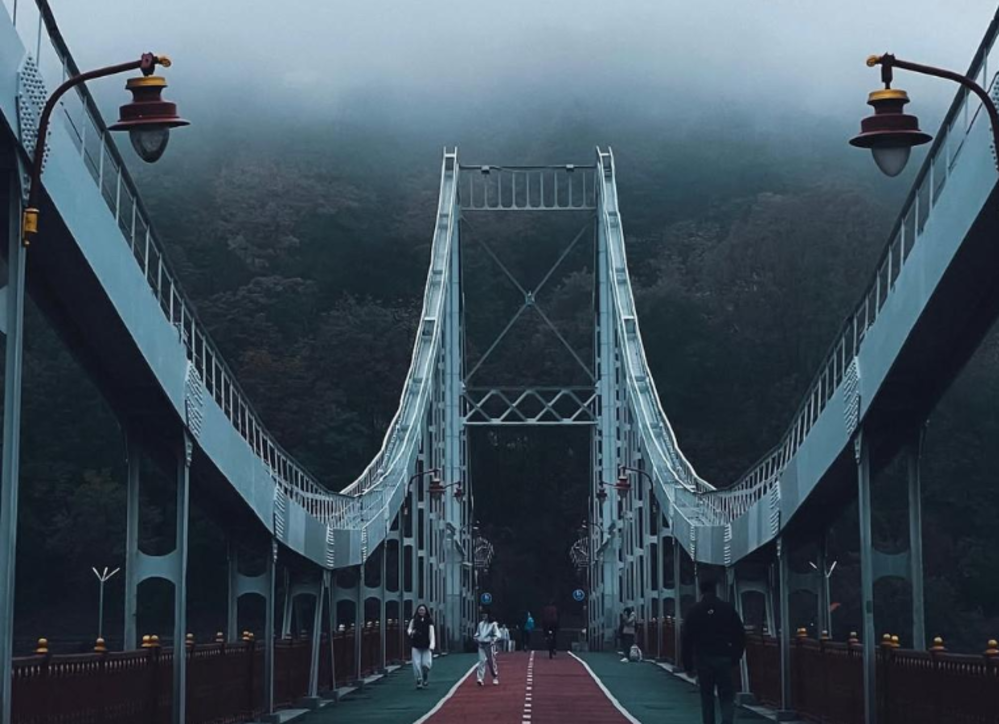 Велосипедно-пішохідний міст повністю "поринув" у туман!