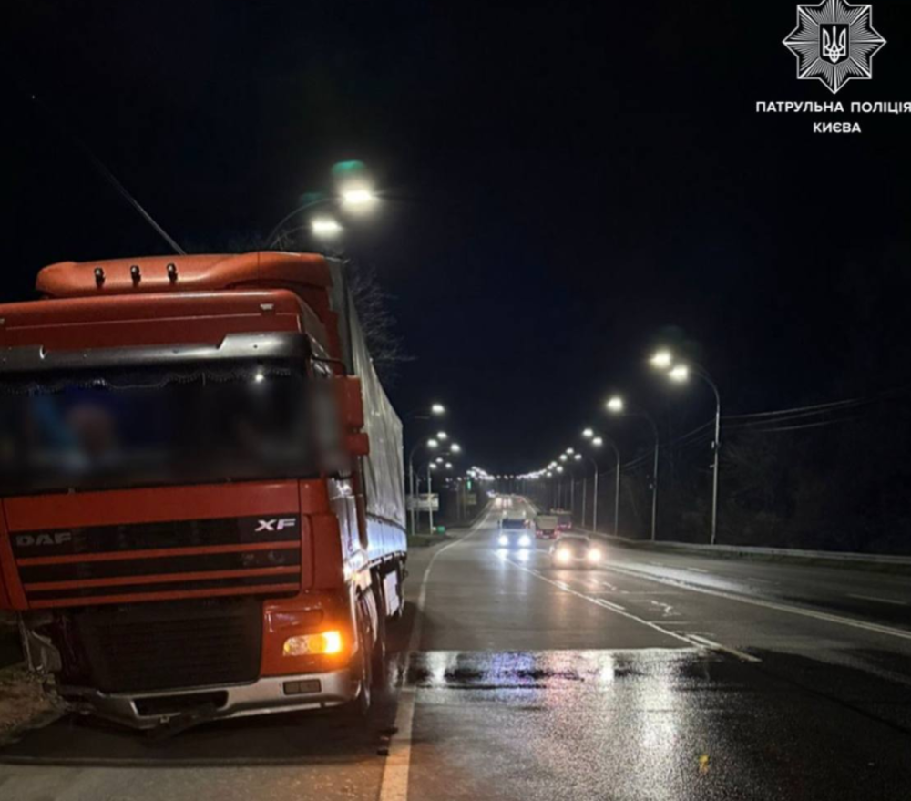 Патрульні отримали звернення від свідків ДТП в Голосіївському районі. Прибувши на місце події вони з’ясували, що водій вантажівки DAF в'їхав у відбійник: