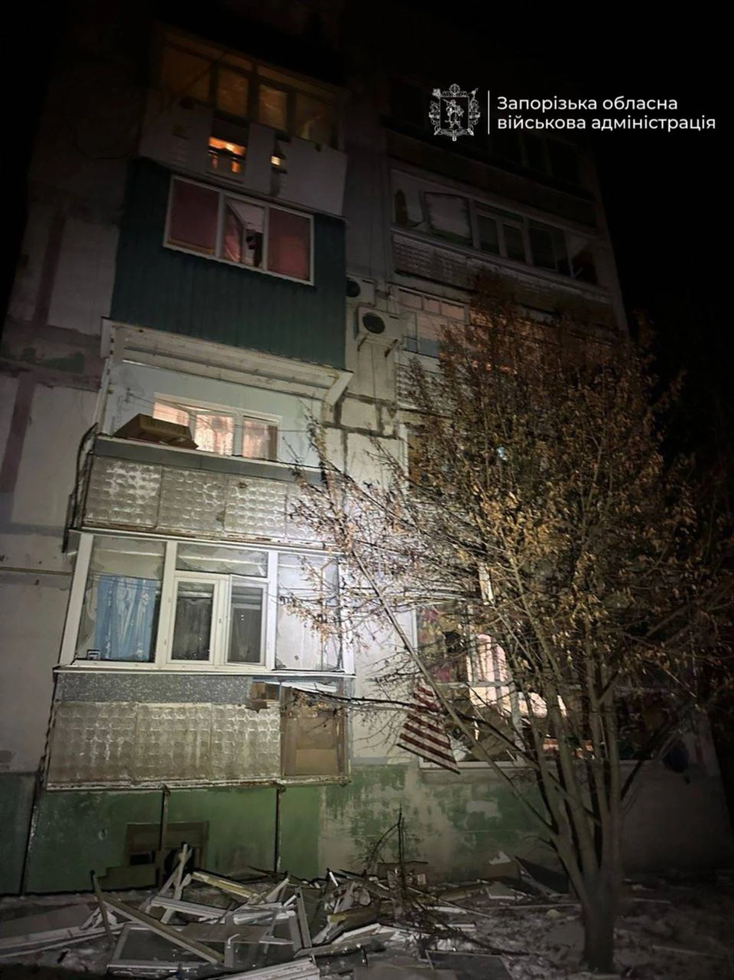 Вночі ворог атакував Запорізький район, спричинивши пожежу у Вільнянську. Пошкоджено багатоповерхівки, але обійшлося без постраждалих.